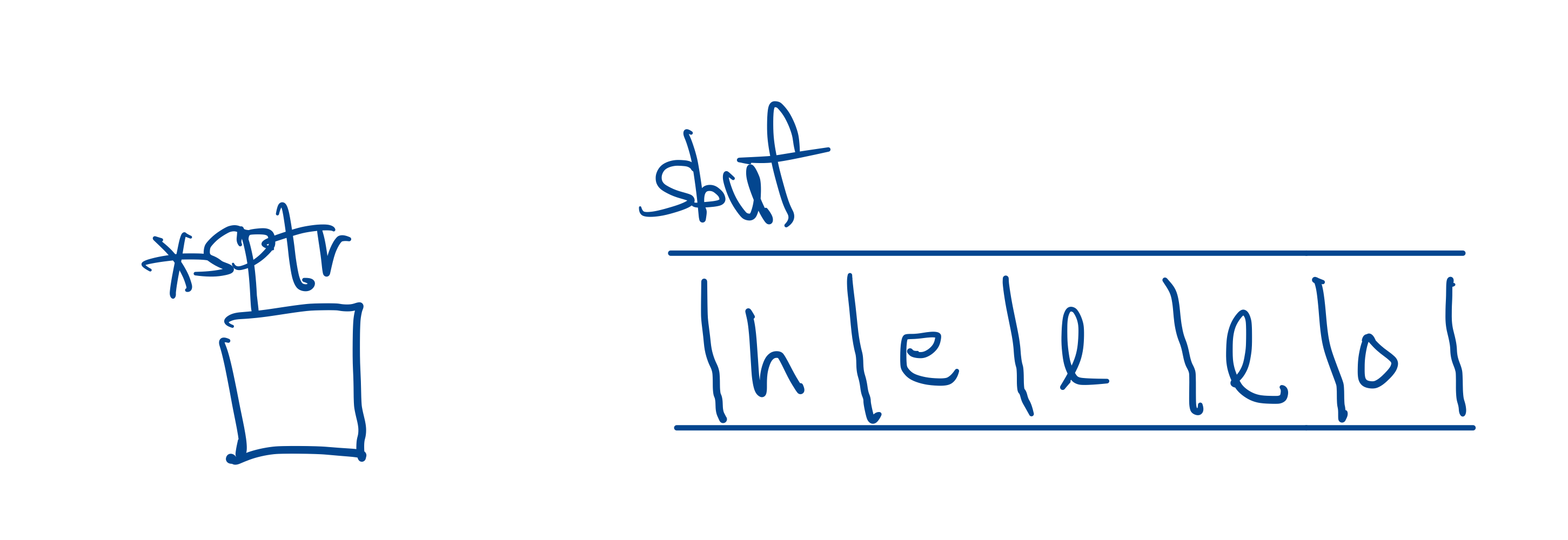 sbuf가 메모리에 할당된 주소를 포인터 변수에 대입해서 사용합니다.