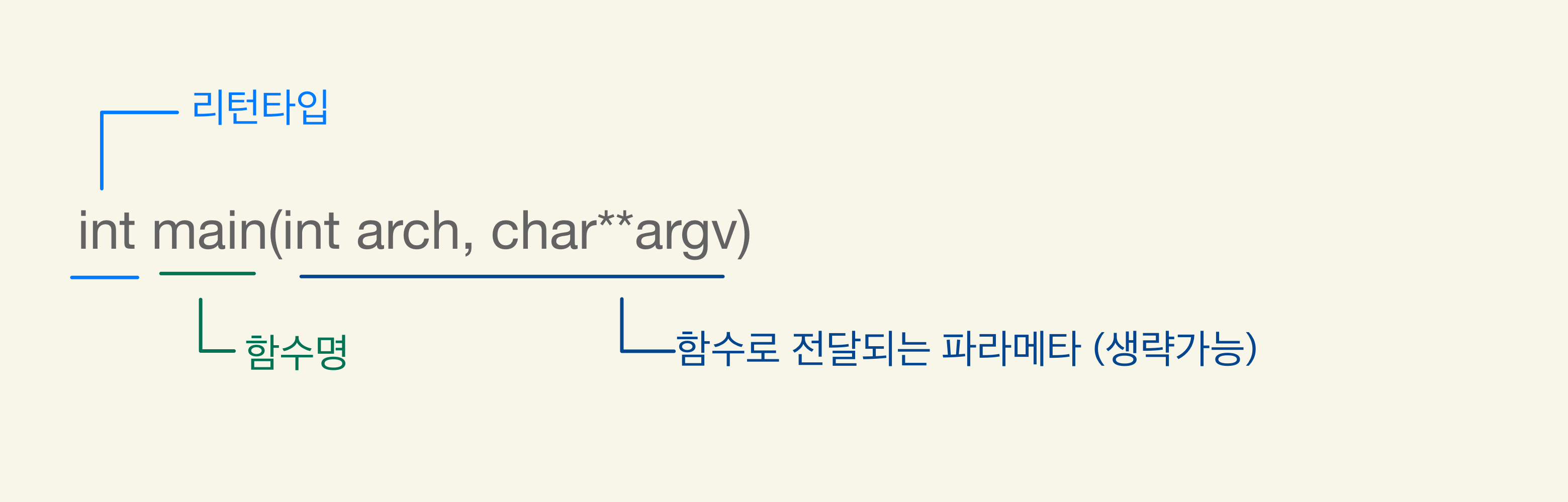 // main() 함수는 프로그램을 시작하는 함수로 반드시 존재해야 하는 함수입니다.